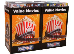 Display shown holds 240 DVDs. It’s pre-packed and ready to go. Just pop the top and set the display.
